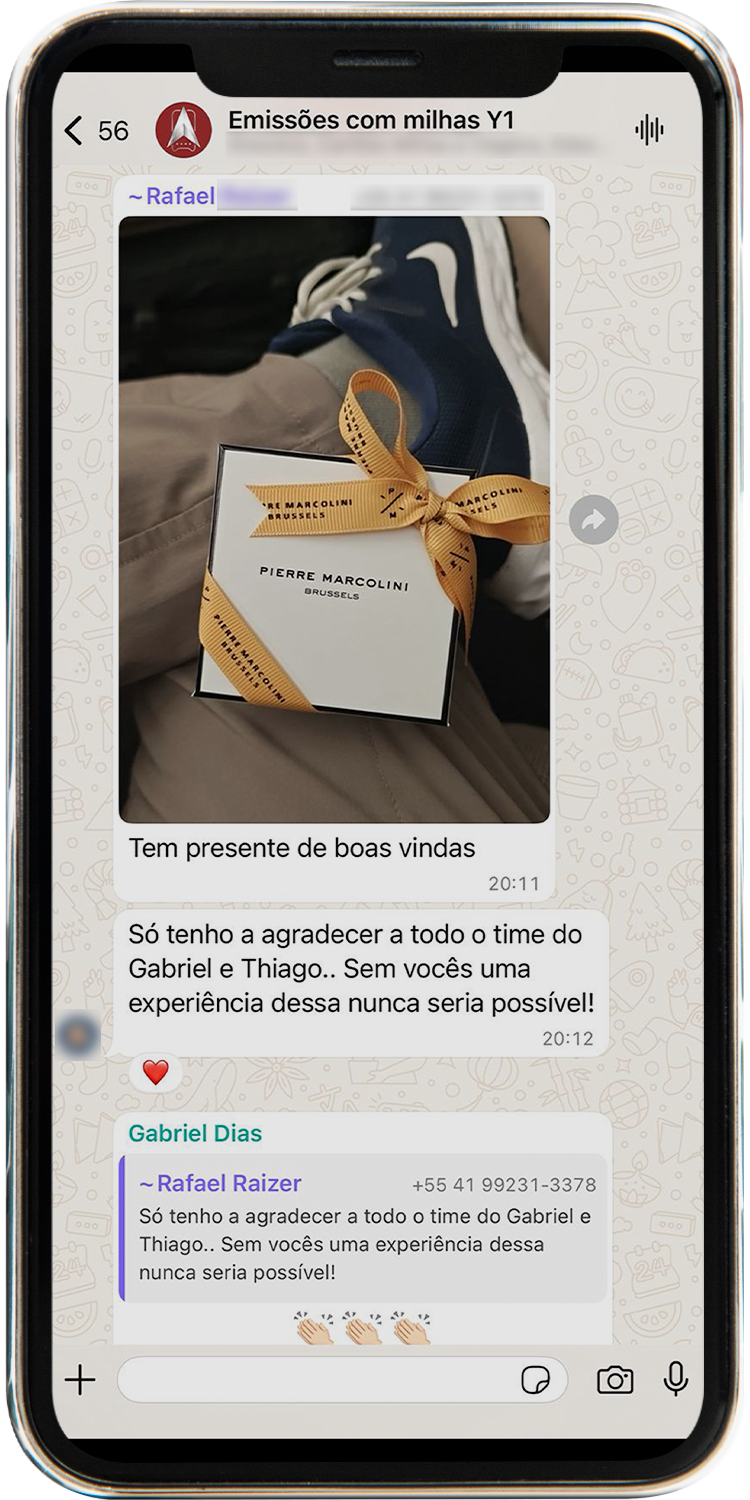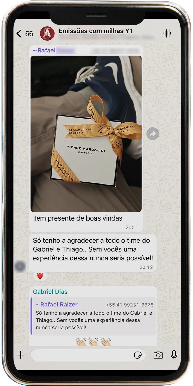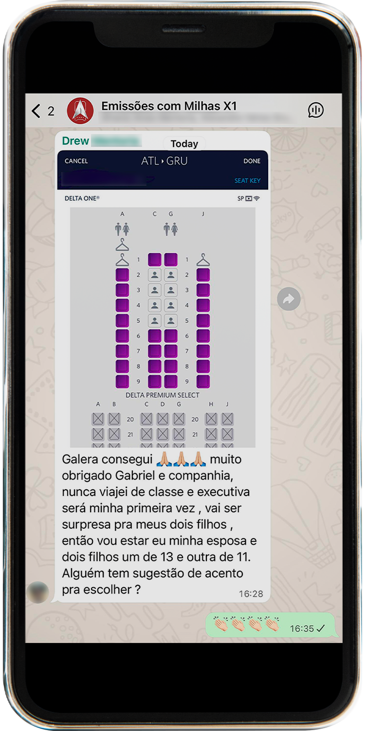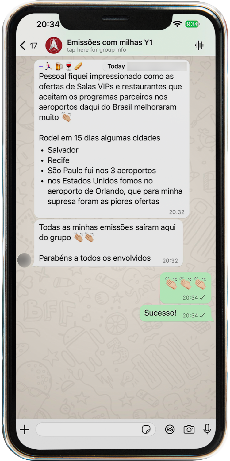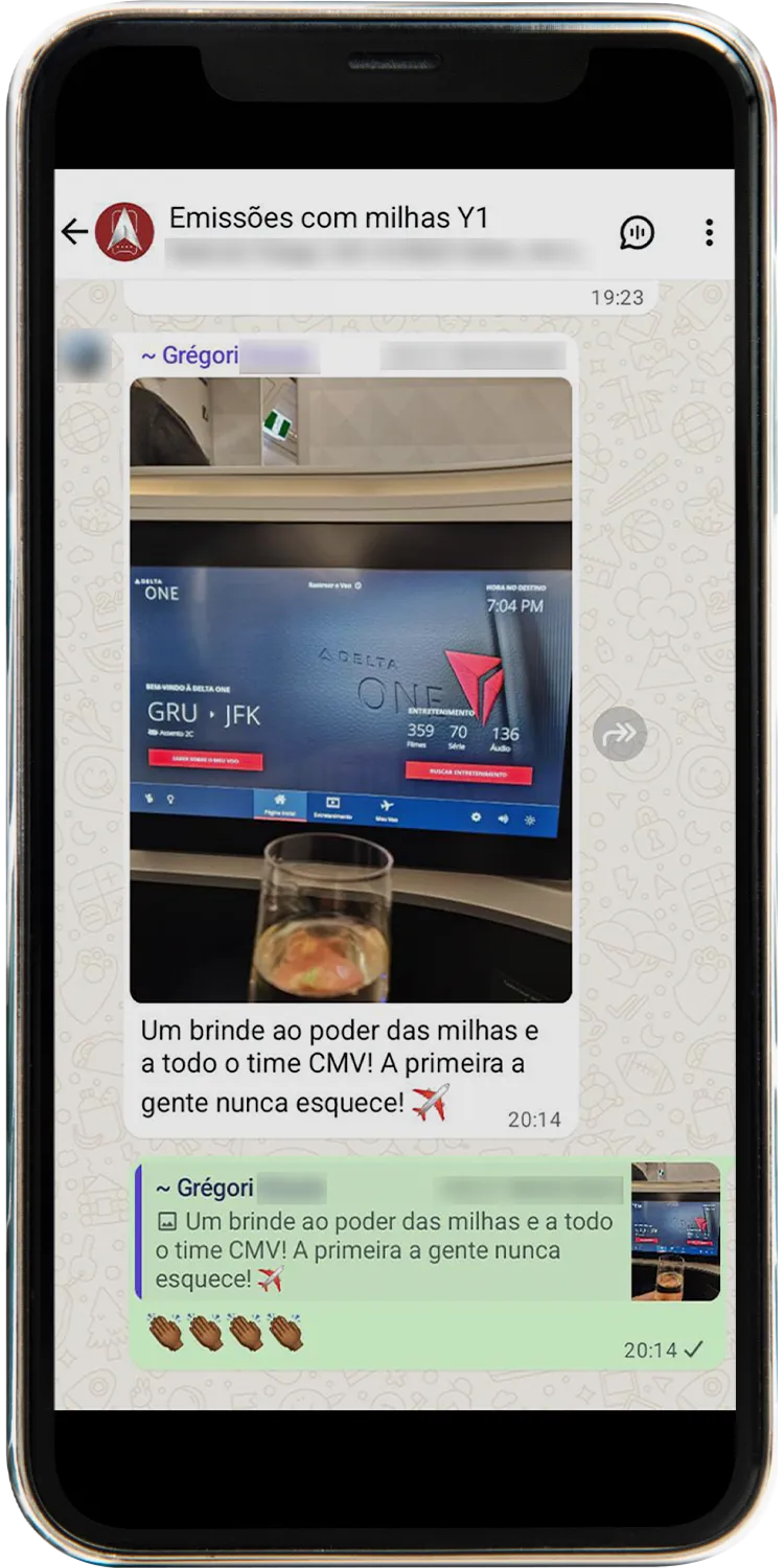 Todos os alertas são enviados diretamente em um grupo exclusivo no WhatsApp. Assim que surgem novas oportunidades, você recebe uma mensagem com todos os detalhes da emissão, como rota, datas, quantidade de milhas e instruções para emitir a passagem. Tudo chega pronto, sem que você precise ficar procurando.